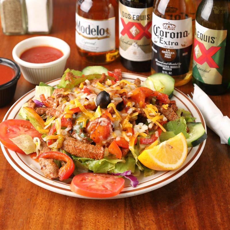 Served with Rice and Refried or Whole Pinto Beans, or House Salad and * Corn or Flour Tortillas